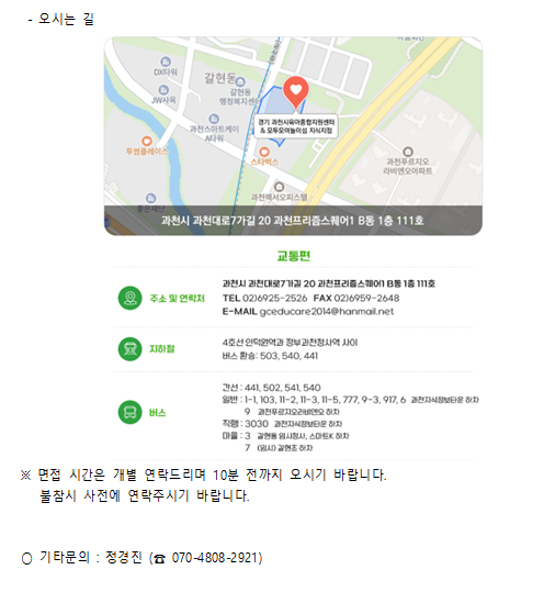 [과천시육아종합지원센터] 직원채용(대체교사) 공고의 건