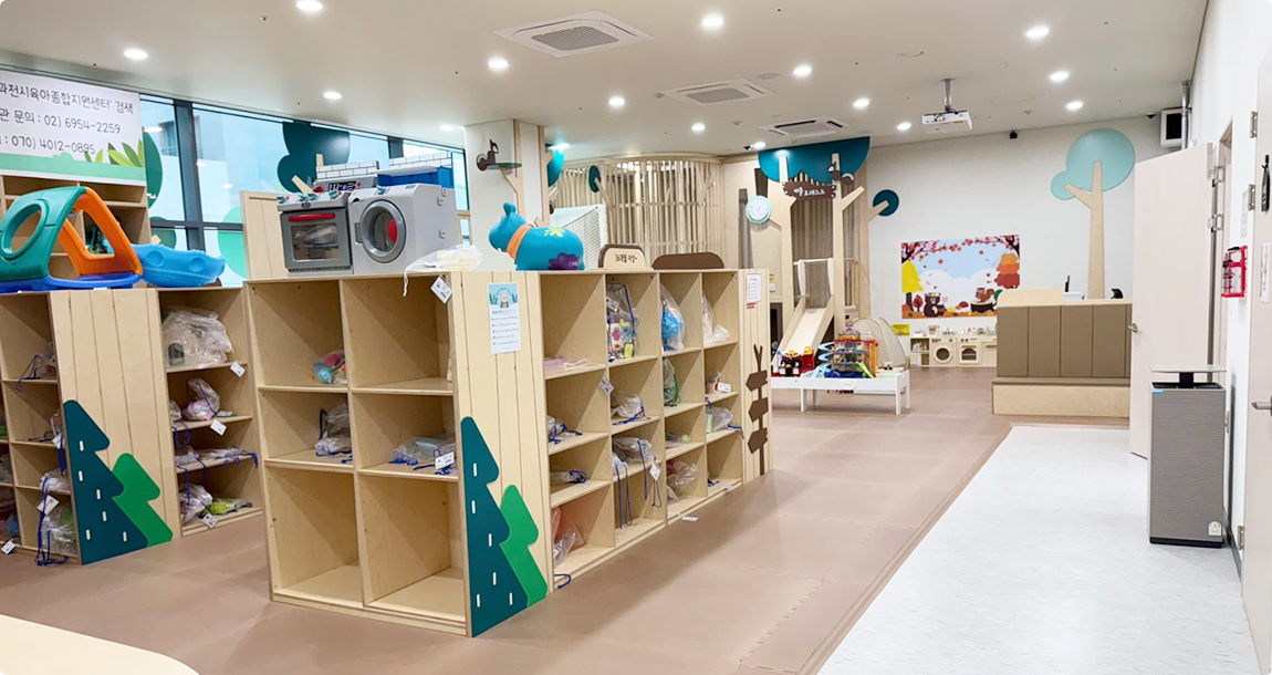 구분, 놀이실, 장난감도서관, 세척실, 화장실, 수유실, 안내데스크로 구성